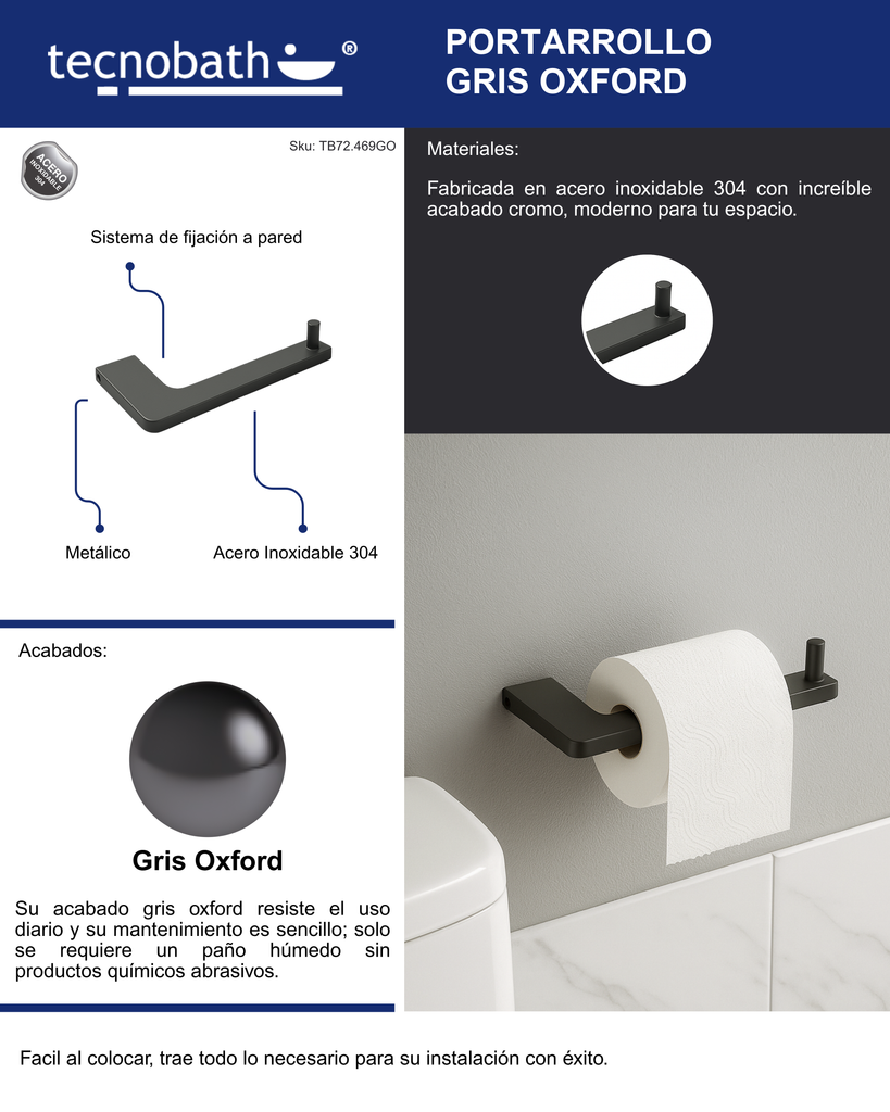 Este portarrollos de Tecnobath combina diseño contemporáneo y materiales de alta calidad para brindar funcionalidad con un toque estético. Fabricado en acero inoxidable, con elementos de fijación de latón, ofrece una sujeción firme y un acabado de lujo ideal para todo tipo de baños.