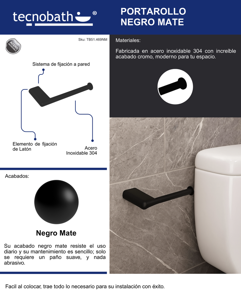 Este portarrollos de Tecnobath combina diseño contemporáneo y materiales de alta calidad para brindar funcionalidad con un toque estético. Fabricado en acero inoxidable, con elementos de fijación de latón, ofrece una sujeción firme y un acabado de lujo ideal para todo tipo de baños.