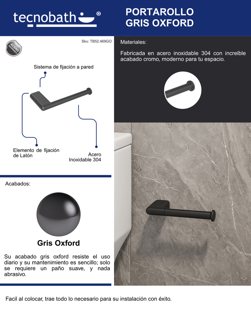 Este portarrollos de Tecnobath combina diseño contemporáneo y materiales de alta calidad para brindar funcionalidad con un toque estético. Fabricado en acero inoxidable, con elementos de fijación de latón, ofrece una sujeción firme y un acabado de lujo ideal para todo tipo de baños.