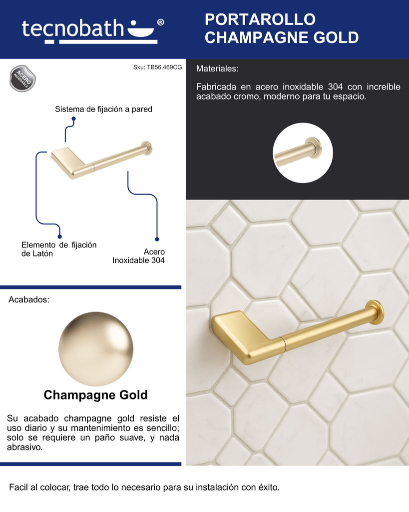Este portarrollos de Tecnobath combina diseño contemporáneo y materiales de alta calidad para brindar funcionalidad con un toque estético. Fabricado en acero inoxidable, con elementos de fijación de latón, ofrece una sujeción firme y un acabado de lujo ideal para todo tipo de baños.