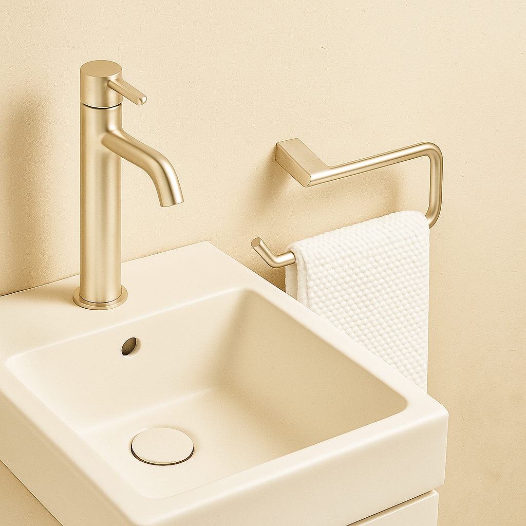 Este toallero de Tecnobath es perfecto para instalarse junto al lavabo, ofreciendo acceso inmediato a la toalla de mano con estilo y funcionalidad. Su estructura de acero inoxidable con fijación de latón garantiza una alta resistencia y durabilidad, ideal para baños modernos y elegantes.