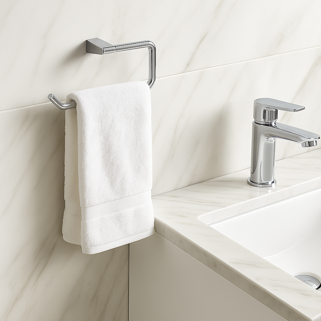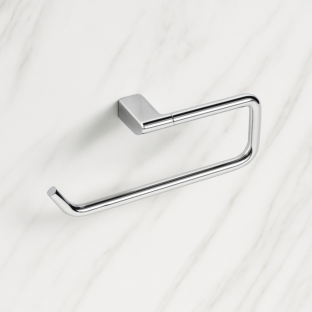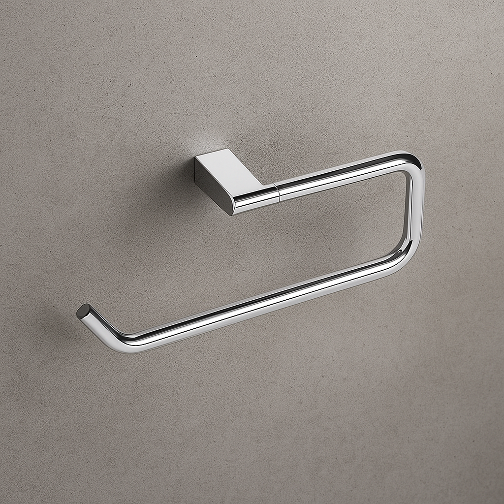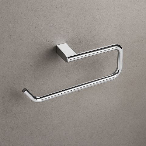 Este toallero de Tecnobath es perfecto para instalarse junto al lavabo, ofreciendo acceso inmediato a la toalla de mano con estilo y funcionalidad. Su estructura de acero inoxidable con fijación de latón garantiza una alta resistencia y durabilidad, ideal para baños modernos y elegantes.