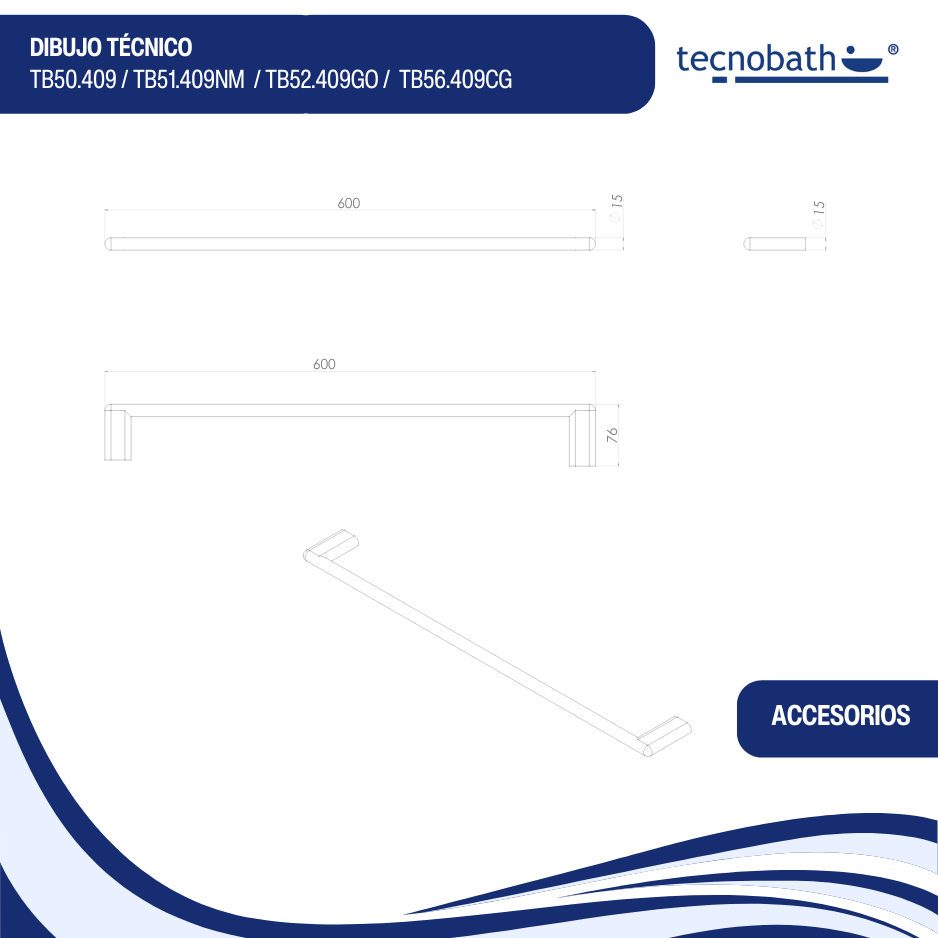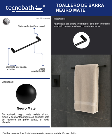 Este toallero de Tecnobath ofrece una solución elegante y funcional para colgar toallas en baños modernos. Fabricado en acero inoxidable con base de fijación de latón, destaca por su resistencia y su estética limpia. Ideal para baños residenciales, comerciales o de hospitalidad.