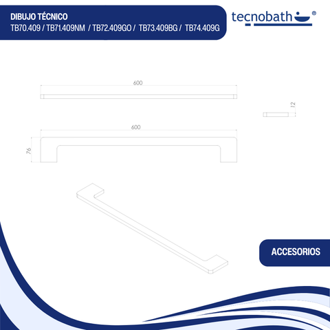 El toallero de barra de Tecnobath es ideal para colocar junto al lavabo, la regadera o el WC, ofreciendo un diseño limpio y funcional para colgar toallas de manera cómoda. Fabricado en acero inoxidable, combina durabilidad y estética en distintos acabados modernos.