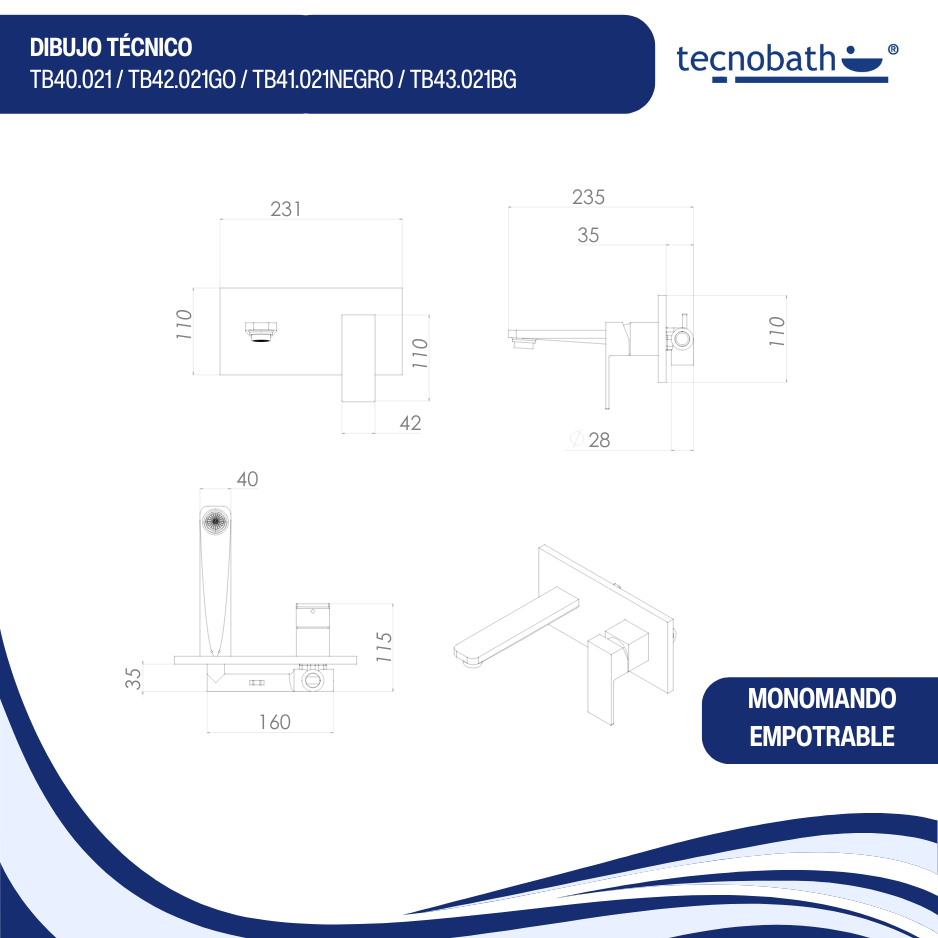 - Diseño empotrable. Estilo minimalista y moderno para un baño elegante.